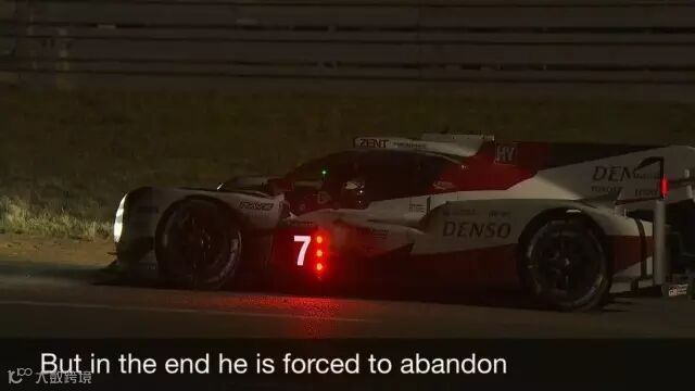 就在大家正准备放松自己不断打架的眼皮的时候,勒芒的夜给丰田车队开了一个意料不到的玩笑:当地时间夜间11点左右,位于全场第二位的8号丰田车组遭遇前轴电机故障,前部车身下冒出滚滚白烟,不得不进站维修。当地时间凌晨1时左右,领先全局的7号丰田在安全车后由圈速记录保持者小林可梦伟驾驶下变速箱档位锁死,只在一档。小林费尽心力以电力拖行了10多分钟,最终耗尽,7号出局!!!