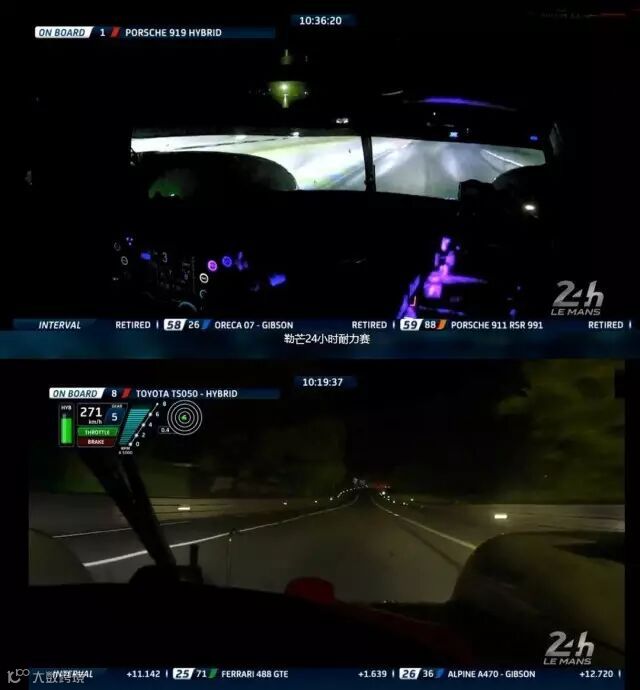 ▲ 保时捷919(上)与丰田TS050(下)驾驶舱夜晚视角