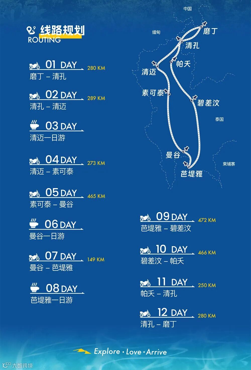 12天骑行自驾玩转泰国,这是很不一样的旅程。让我们一路南下直达曼谷,沉浸天使之城罪恶之都的魅力。感受纯真泰国海滩奔放与热情。