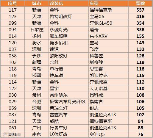 截止目前,好车灯投票前二十公示!
