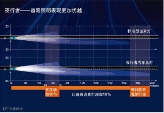 [欧司朗夜行者与普通卤素灯照明效果比较]