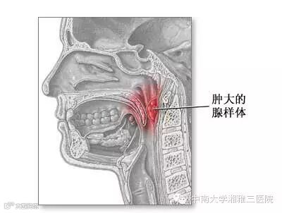 腺样体也叫咽扁桃体或增殖体,位于鼻子后方,扁桃体上方,与扁桃体类似也属于淋巴组织。