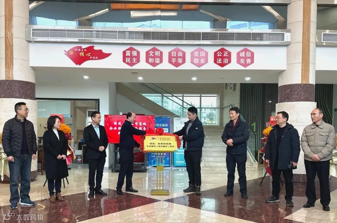 2月18日上午,绿筑·未来智慧城企业服务(政务服务)驿站揭牌仪式在绿筑·未来智慧城举行。龙湾区政务服务中心主任金建锋为驿站揭牌,蒲州街道、区相关审批部门负责人参加活动。
