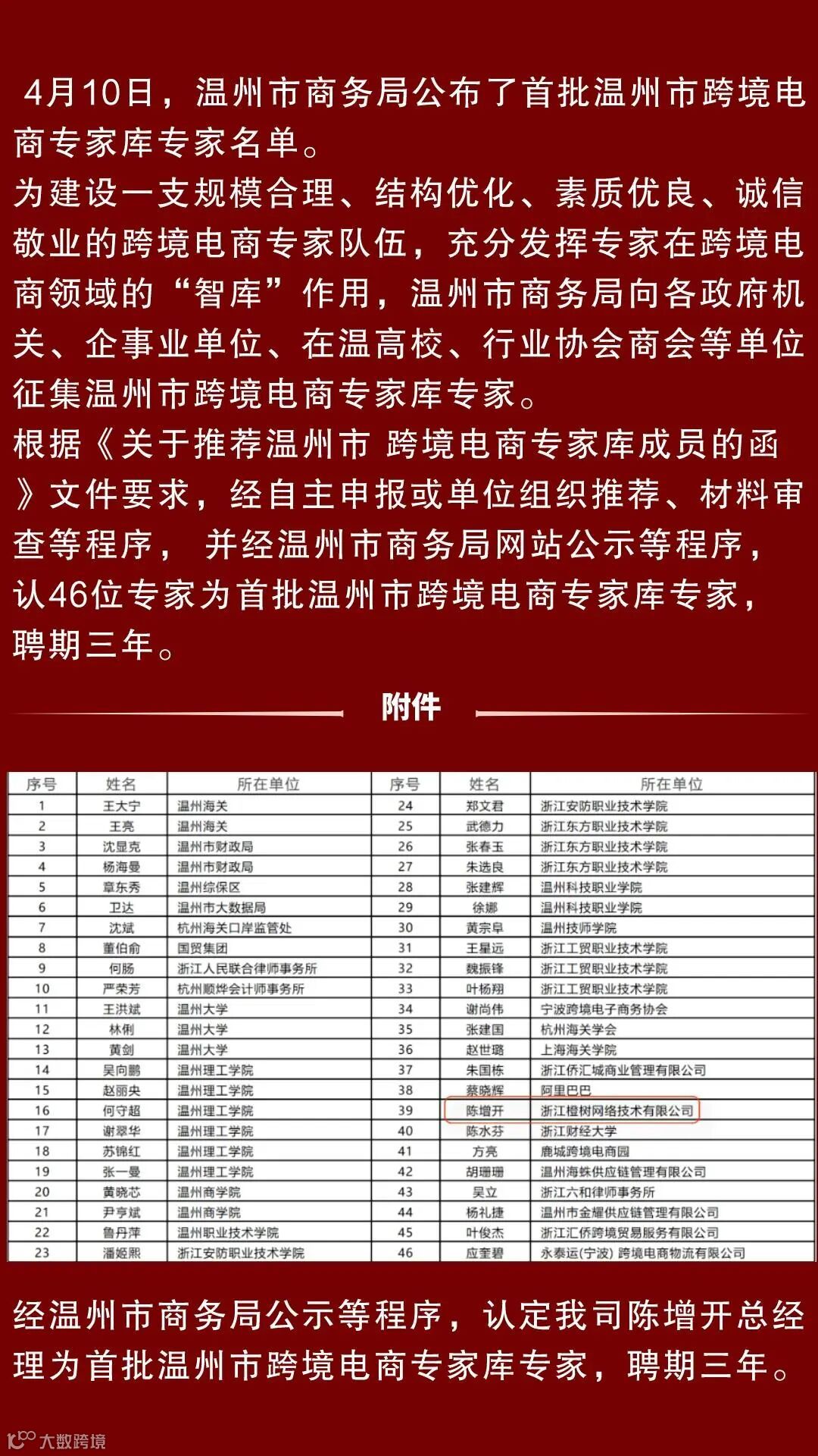 导读:陈增开总经理受聘为首批温州市跨境电商专家库专家