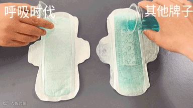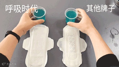 口说无凭,小编用其他卫生巾和呼吸时代卫生巾做吸水量对比实验(日用款)。