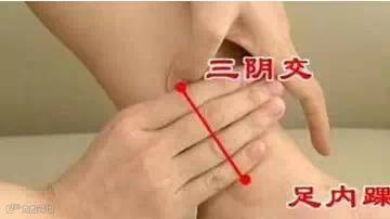 3、调月经,去斑,去皱,祛痘三阴交是脾、肝、肾三条经络相交汇的穴位。其中,脾化生气血,统摄血液。肝藏血,肾精生气血。女人只要气血足,那些月经先期、月经后期、月经先后无定期、不来月经等统称为月经不调的疾病都会消失。而女人脸上长斑、痘、皱纹,其实都与月经不调有关。只要每天晚上9点—11点,三焦经当令之时,按揉两条腿的三阴交各15分钟,就能调理月经,祛斑、祛痘、去皱。不过,要坚持才有效果哦,坚持每天按揉,按揉一个月之后,才能看得到效果。如果指望一两天就看到效果,只能是做梦了。