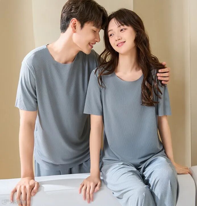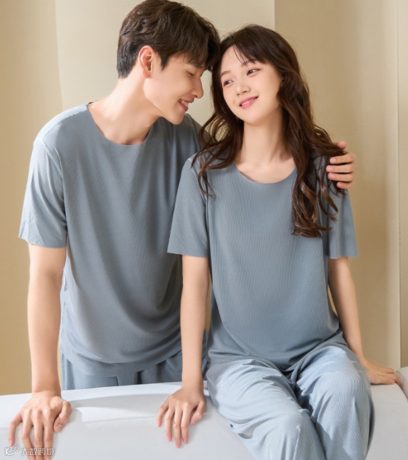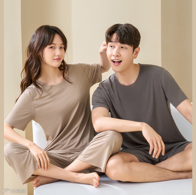 这款家居服采用了冰丝螺纹设计