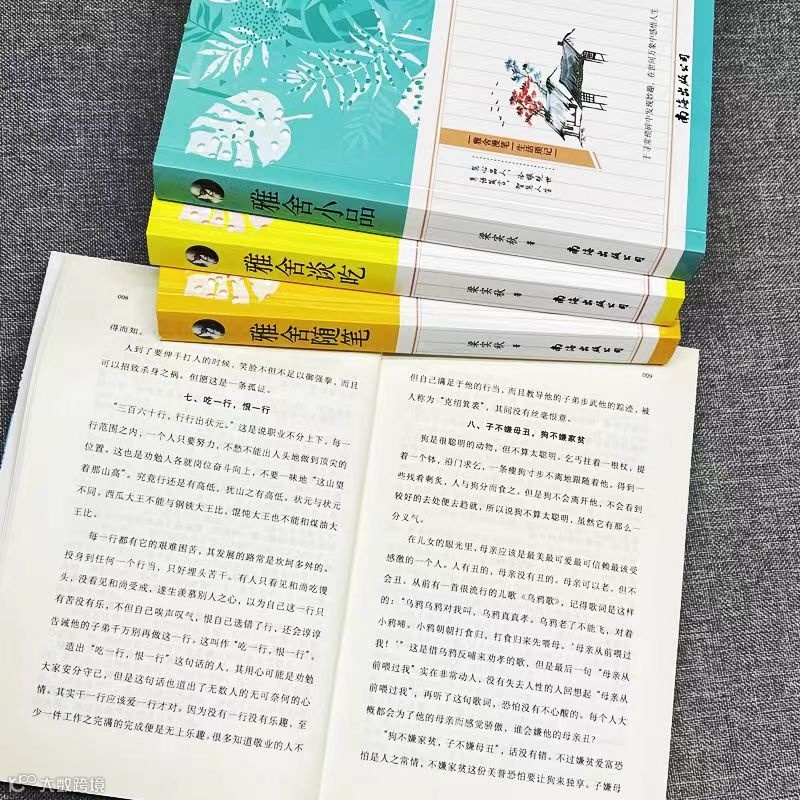 全书包含《雅舍小品》《雅舍谈吃》《雅舍随笔》《雅舍杂文》4册经典: