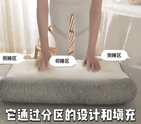 将枕头划分为侧睡区以及仰睡区