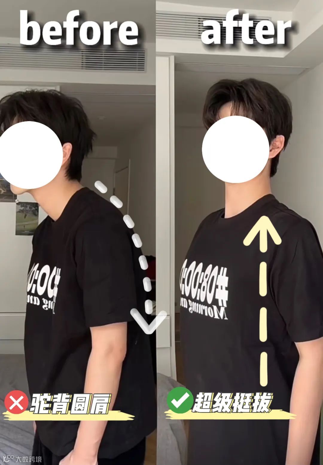 驼背、高低肩、富贵包以及颈纹