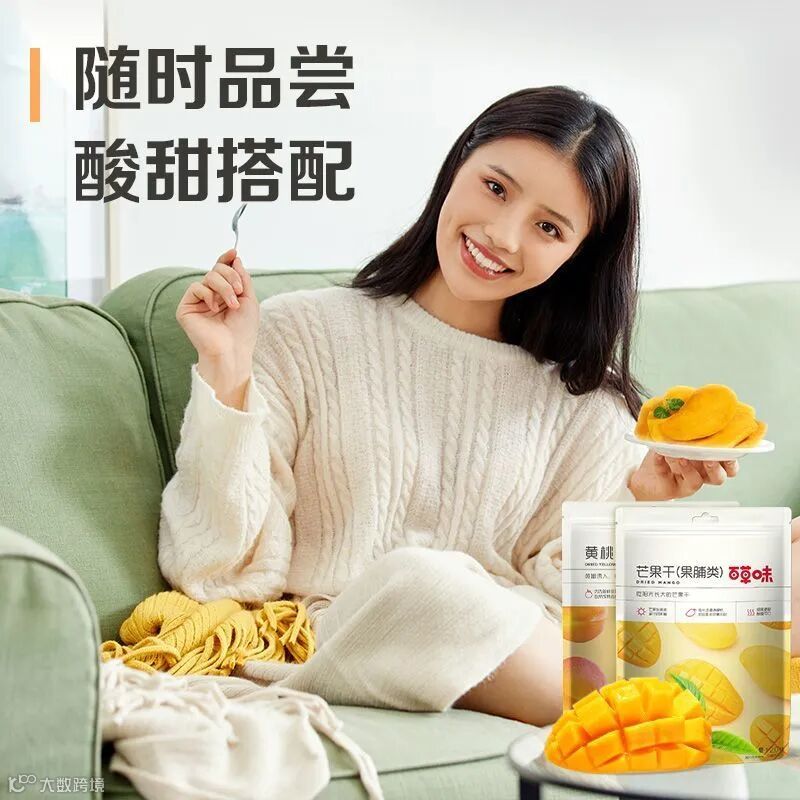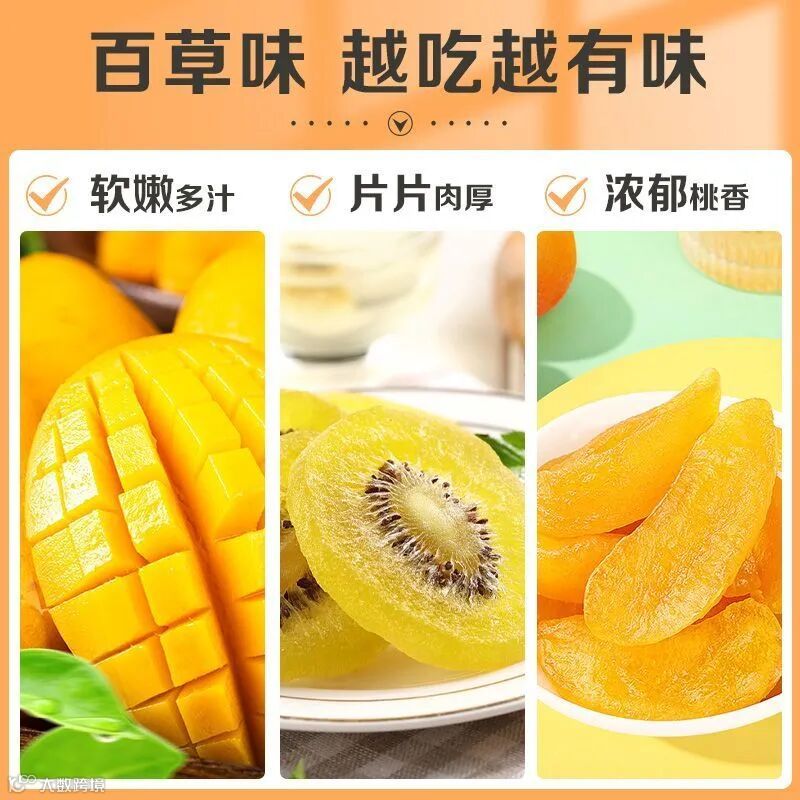 芒果干犹如阳光般明媚的果味,让人品尝一口就爱上;黄桃干满含水分,果肉饱满,回味无穷;
