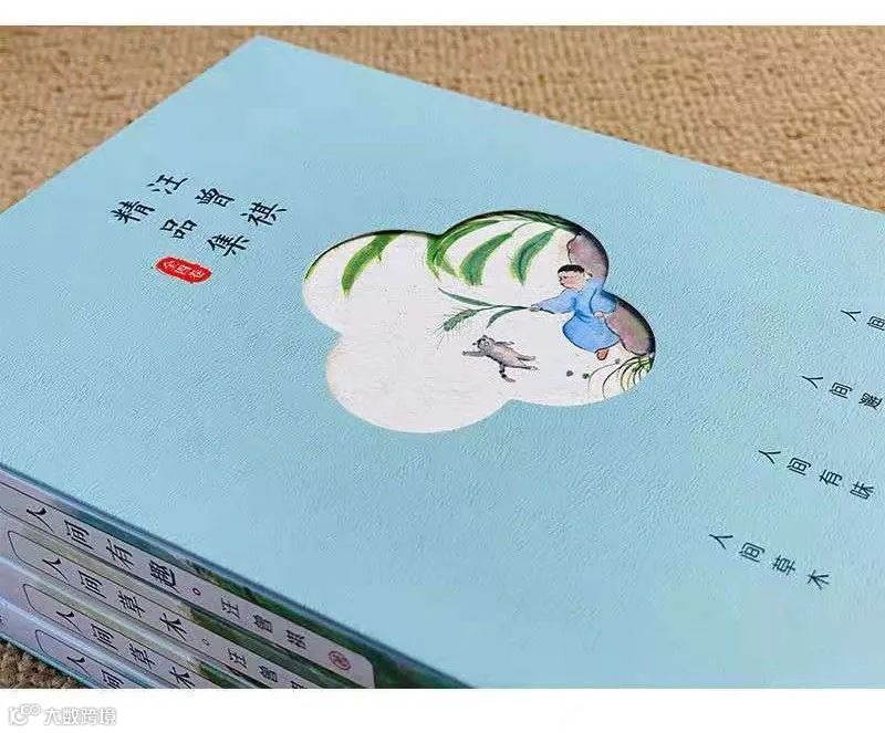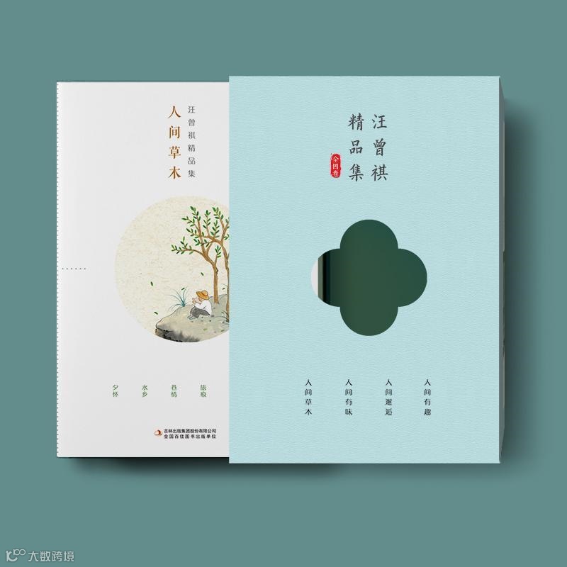 礼盒函套,边角诗经草木点缀,书脊以荷花为花纹。