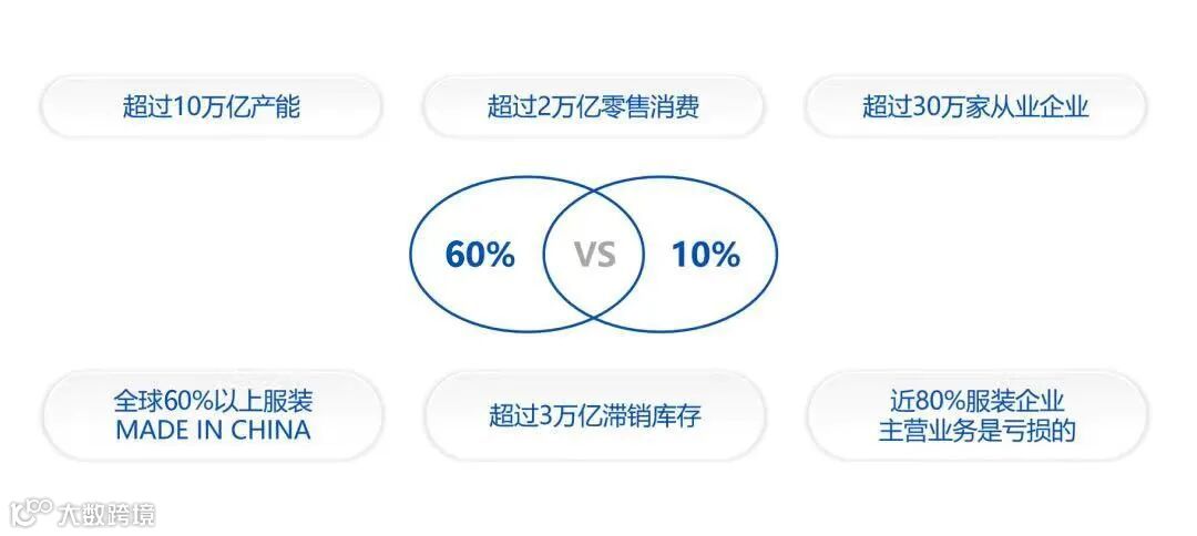 众所周知,中国被称为全球服装制造工厂,全球60%以上的服装基本上都是由中国生产,国内每年零售市场规模高达2.3万亿,总体生产产值近10万亿。然而由于存在很难把握市场需求、备货以及供应链信息化程度不高的问题,导致国内服装企业普遍存货过高,平均利润率不到10%,扣除滞销库存后,很多服装企业都处于亏损状态。