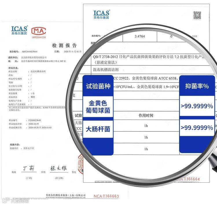 关键是它的除菌率经过质检证明,高达99%,能更好的清除洗衣机里的细菌,守护全家健康~