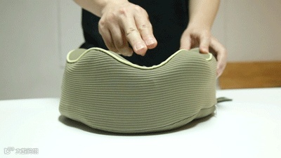 和普通颈枕不同,它的形状很独特,像一团卷卷的云朵。一开始你可能不知道它这样设计有什么用,别问,戴上你就知道了。