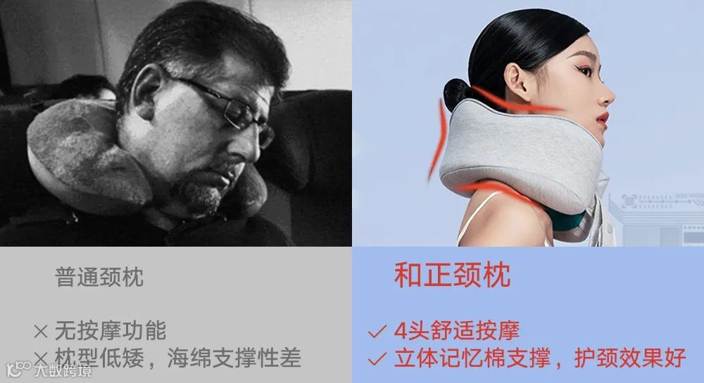 U型枕大家都见过,基本都毫无设计的圆管型海绵枕。看着还行,戴上之后却要歪头找支撑点,用久脖子更累。