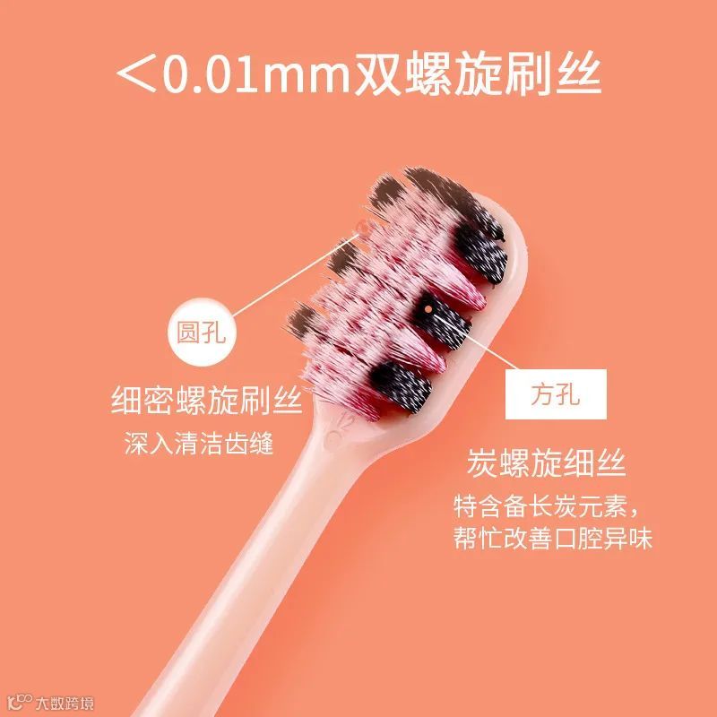 ①3800根高密植毛,②46孔均匀分布,③0.01mm双螺旋刷丝圆方,④0.01柔软细密给您倍软呵护,⑤孕产妇及牙龈敏感者适用;