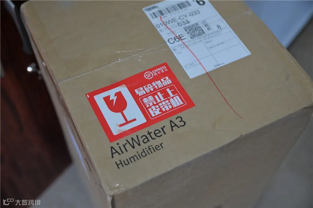 未来科技范收到的秒新AirWater A3快递,包装很严密,两层包装箱设计,外箱快递还粘贴了红色易碎禁止上传送带标识,避免了在运输中转过程中出现问题。