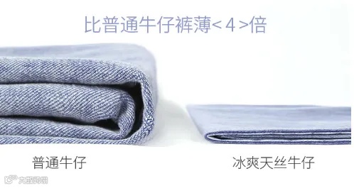 (左为一般牛仔裤,右为天丝裤)