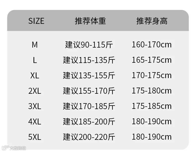 M-5XL的尺码,可以随意选择,不清楚的亲也可以对照以下尺码表哦~