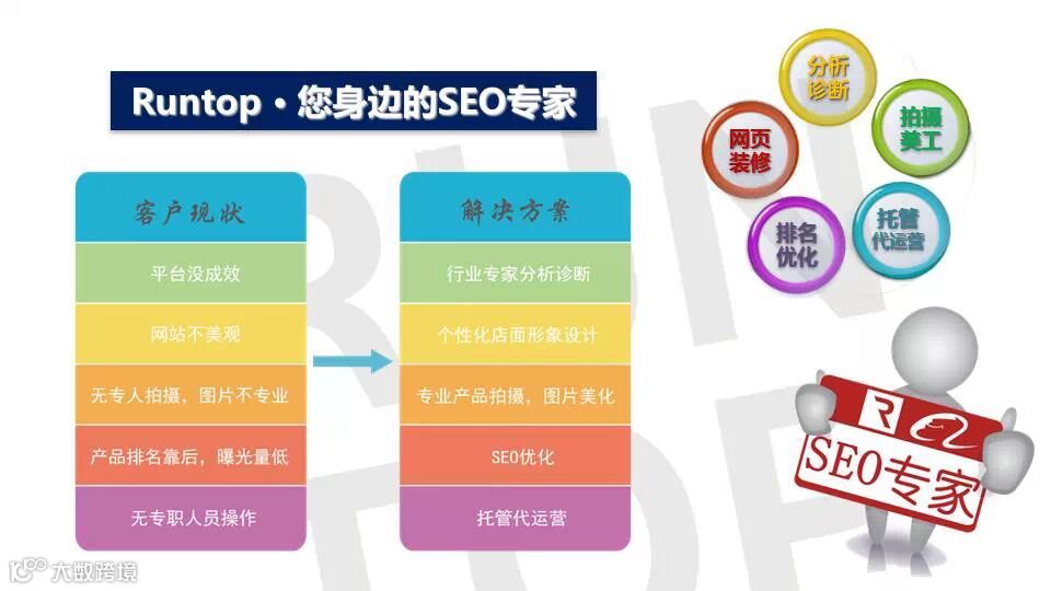 导读:软糖(RunTop)网络科技是专注于外贸B2B平台优化的第三方服务机构,服务于阿里巴巴、环球市场、中国制造、环球资源等外贸B2B的全站优化!致力于帮助企业在使用平台中的平台分析诊断、全站网页装修、产品
