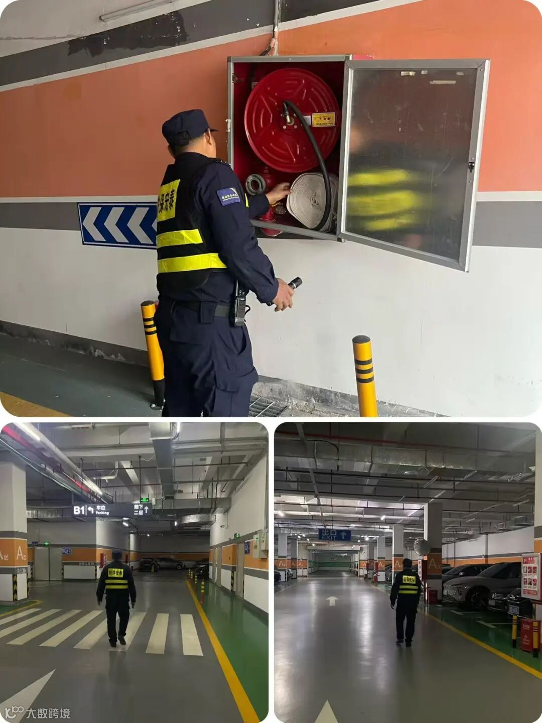 为确保地库停车安全、有序、顺畅,安保部加强车辆管理和巡查力度,并加强地库消防设备的检查。