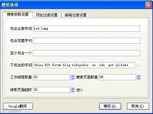 第四栏那里是不包含的字词,可以看到我朋友的软件默认有:china b2b forum blog wikipedia .cn .edu .gov alibaba