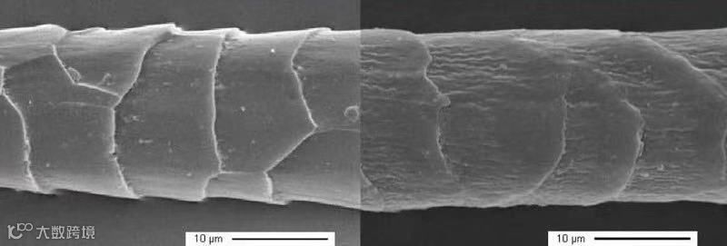 ▲冰丝衫的纤维 ▲ 普通纤维