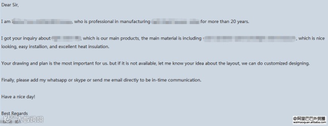 还有一个啊,这个给买家的消息是可以以邮件的形式发给客户的, 所以内容能详细尽量详细,公司介绍1-2句话, 针对RFQ客户询价产品写一个简要产品说明,不要说太多,然后告诉客户需要更多细节请联系我,发邮件,加whatsapp之类的, 如果需要客户提供其他资料也可以着重说明一下。 还有一个估计也是很多小伙伴不会做的点: