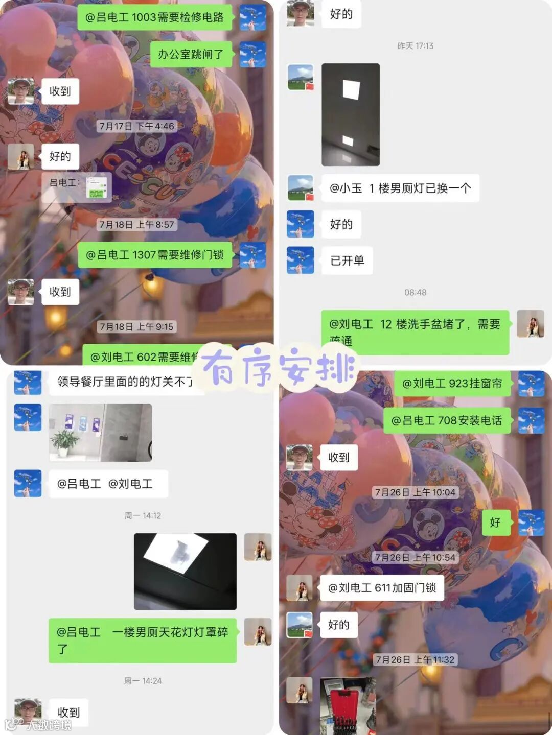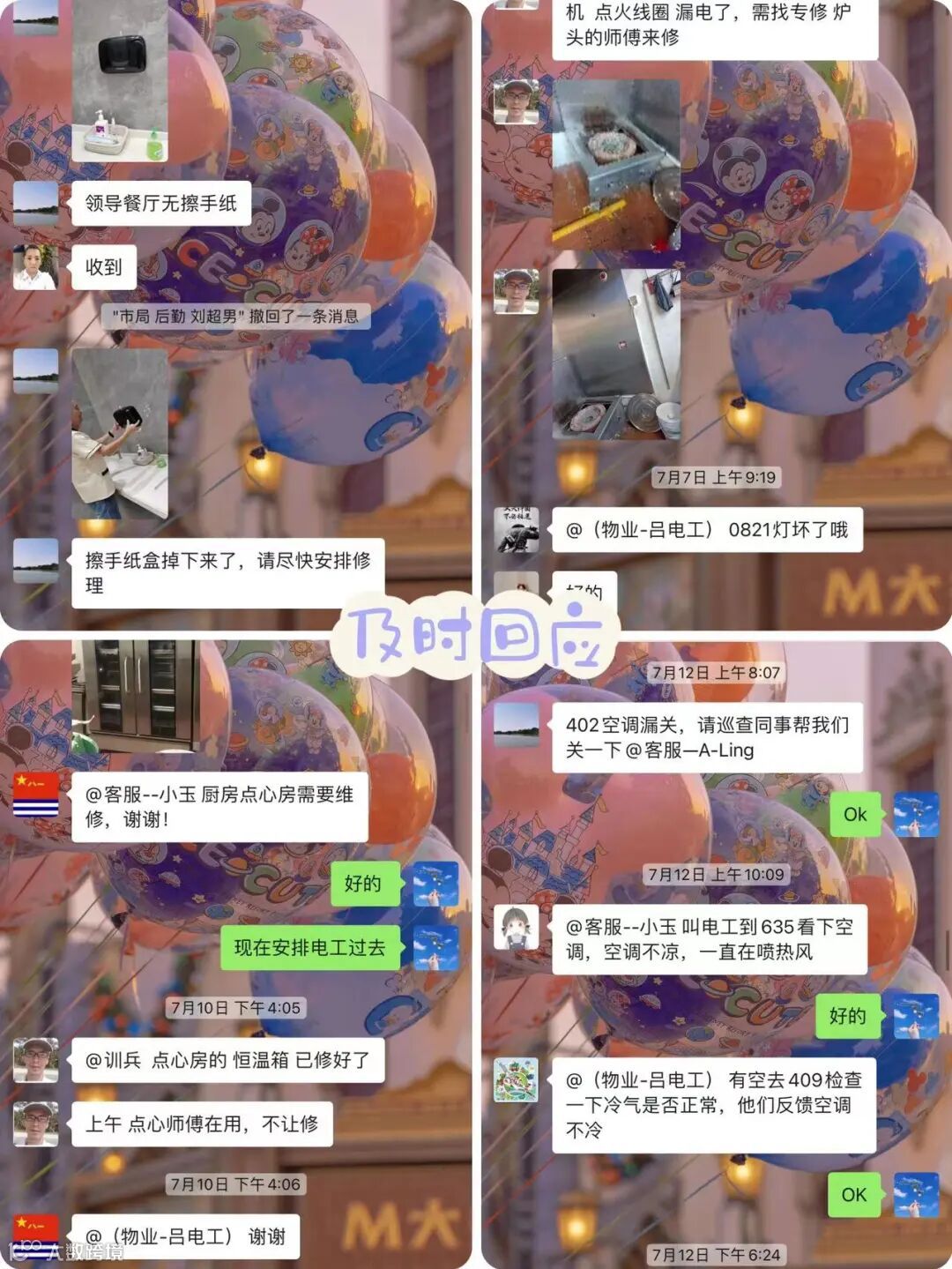 维修扫地机、烤箱、维修水龙头、人脸识别仪器、更换天花灯,检修线路……工程部一刻也没闲着。