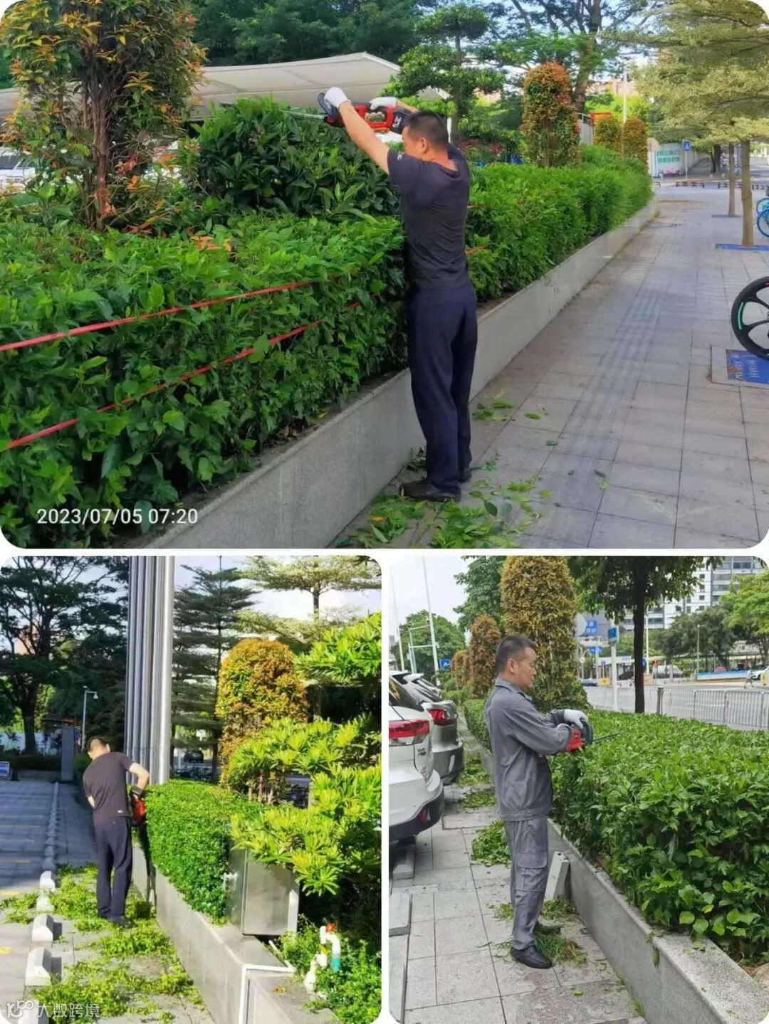 高温炙烤下,每一次枝枝蔓蔓的修剪、每一次小心翼翼地浇灌……都是他挥汗如雨的见证。他用剪刀耕耘着大厦里的一隅绿地,及时浇水灌溉,养护好大厦苗木,保持大厦绿意盎然。