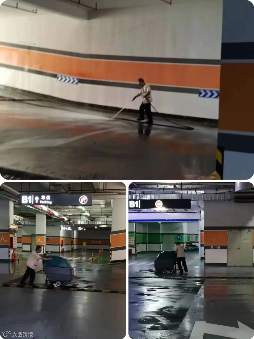 清洗地库地板