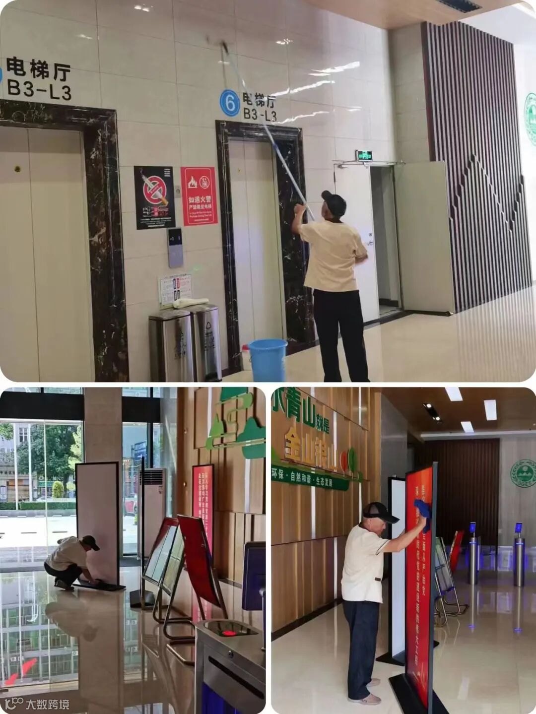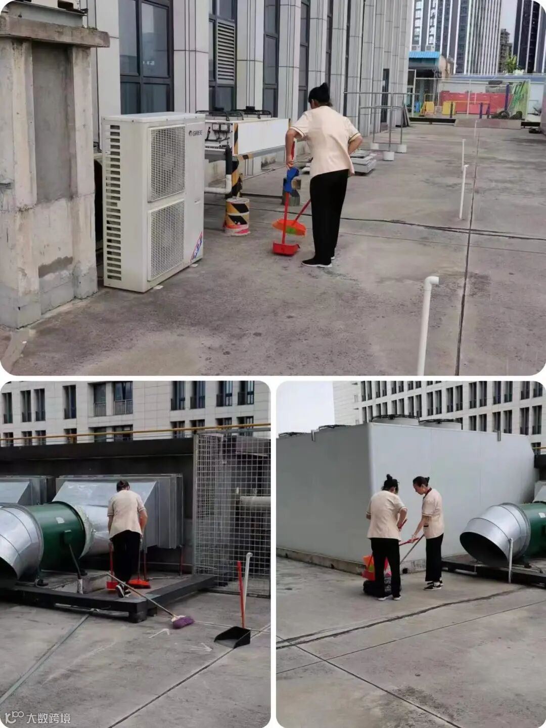 每天清晨开始劳作,打扫外围道路卫生,清洗垃圾桶,擦拭公共区域......他们不怕脏不怕累,即使高温天气也从未间断工作,他们用勤劳的双手为客户们创造一个干净整洁舒适的办公环境。