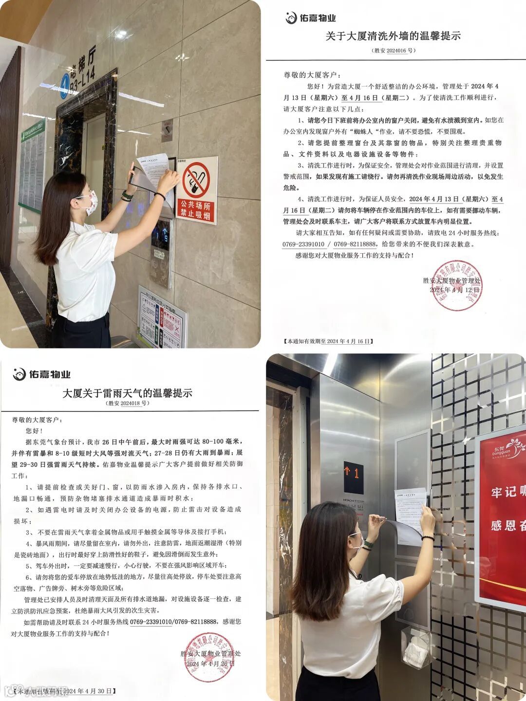 同时,被暴雨笼罩的四月,我们加强大厦所有排水口以及天面的巡查工作,发现积水或者淤堵,及时进行疏通,确保大厦排水系统畅通,安全度汛。现将佑嘉物业四月服务月报呈现予您,以便于您了解我们的工作。