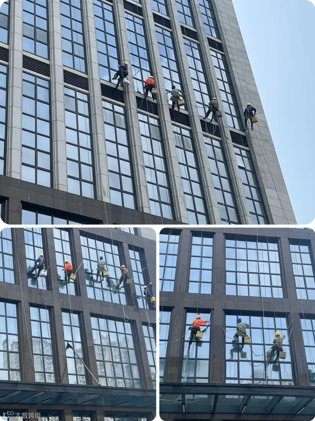 为保持大厦的外观干净整洁,创造良好的办公环境,管理处于4月中旬对大厦外围楼体进行全面清洗。