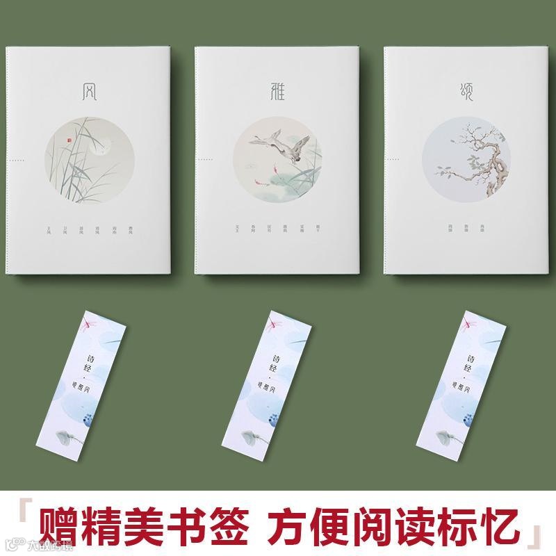 今天我们为读者诸君力荐一套装帧精美典雅的《诗经》(复古插图版,含风、雅、颂三册礼盒套装,并赠书签)。