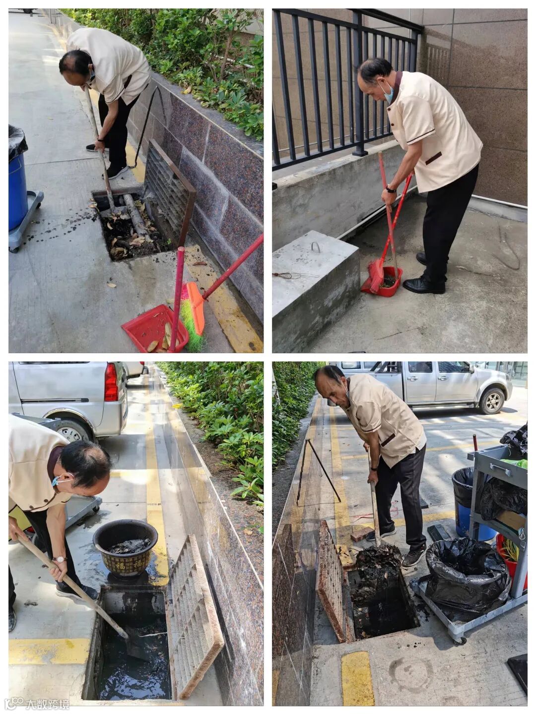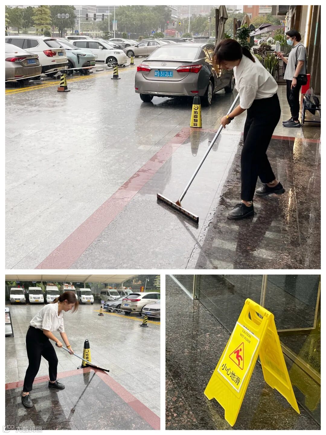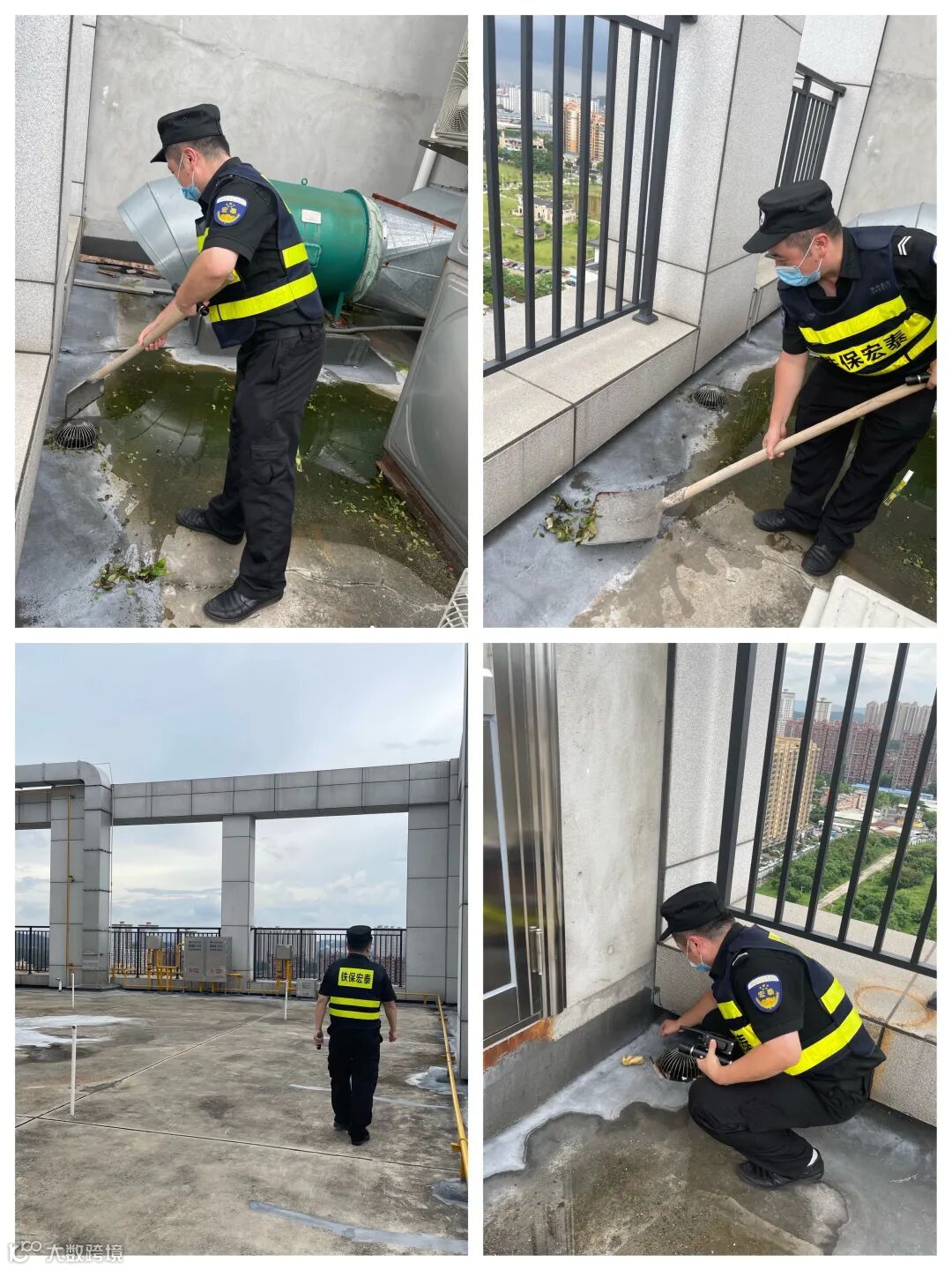 雨中巡检、门岗执勤、排水口疏通、