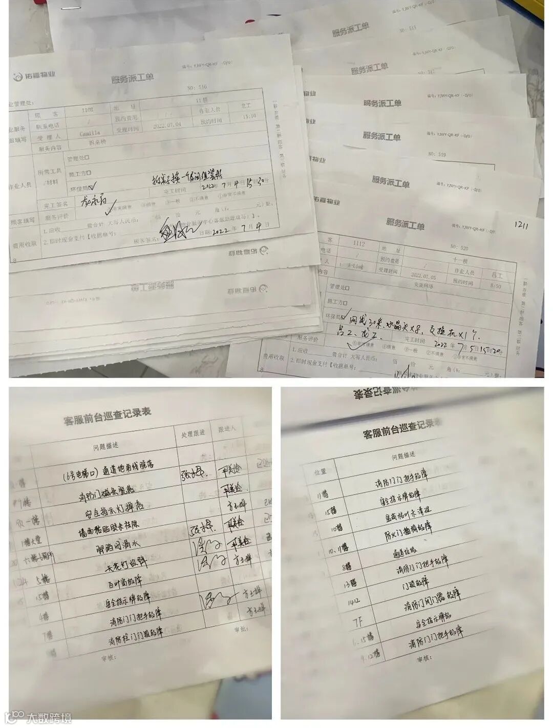客服部每天对大厦进行品质检查,旨在及时发现问题及时整改,持续提升物业服务品质。