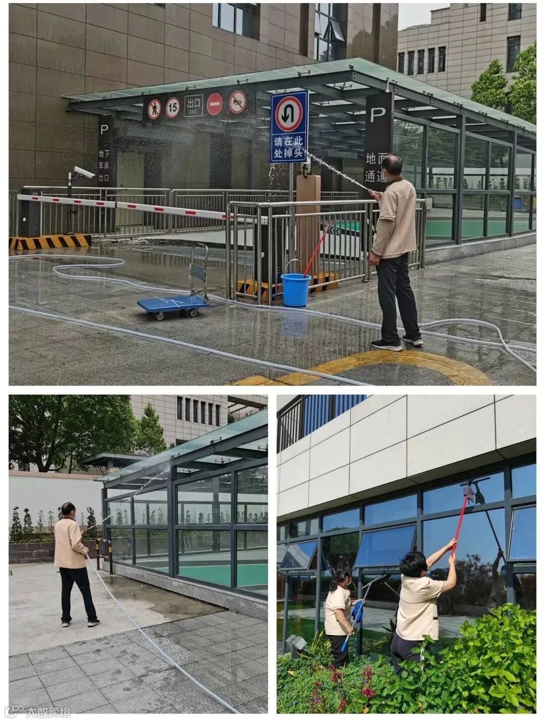 对地下车库地板、外墙进行冲洗