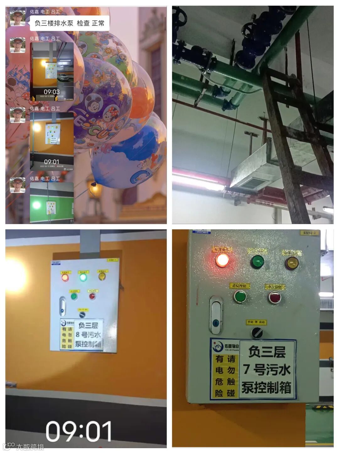 暴雨多发季节,工程部定期对大厦的水泵、开关进行检查检修,保证抽排水设备的正常运行。