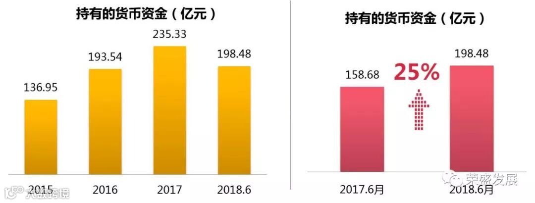 报告期末,公司持有的货币资金总额198.48亿元,较上年同期上涨25%。