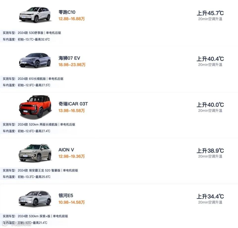 (汽车之家冬测20万内纯电SUV车型空调升温排行榜)