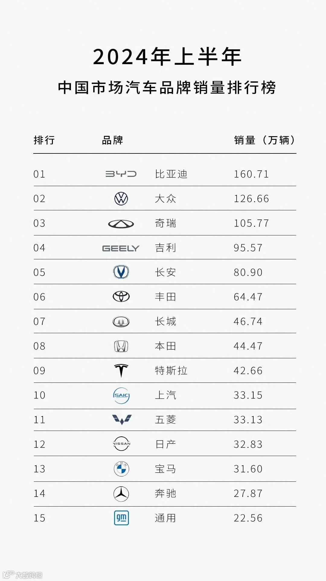 根据2024年上半年中国汽车品牌销量排行榜数据显示,在Top10榜单中,中国品牌占据了6席,中国新能源汽车表现出色!