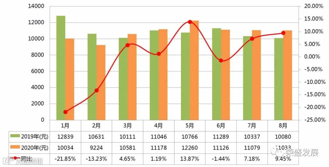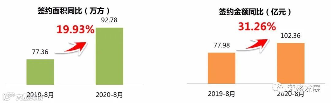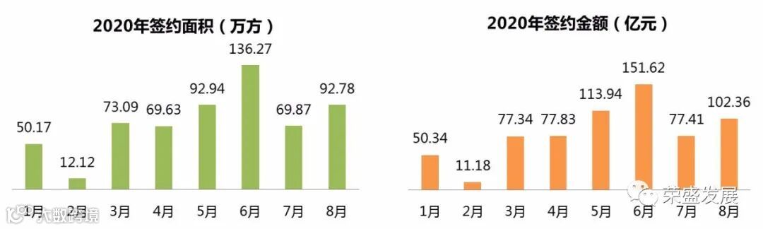 2020年8月,公司实现签约面积92.78万平方米,同比增长19.93%;签约金额102.36亿元,同比增长31.26%;成交均价11033元/平方米,同比增长9.45%。