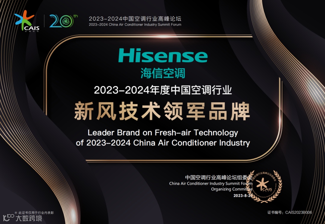 从产品到体验,到领跑新风市场,海信新风空调正在逐渐成为空调领域新风消费的代名词。此次海信新风空调璀璨C300获得行业年度臻选新风产品奖也再次印证了海信在新风领域的领先实力。