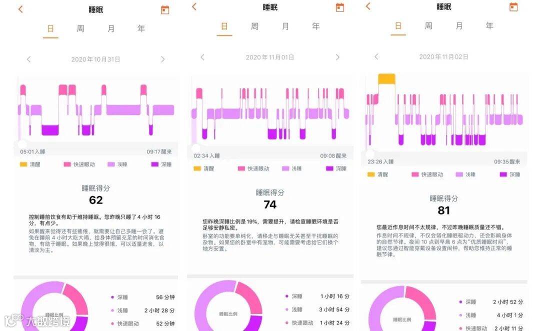 睡眠监测功能同样深得我心,作为一个日夜颠倒的职场人,看到刚刚及格的睡眠分数面露羞愧,明天!明天我一定早(chong)睡(dao)早(fu)起(zhe)!