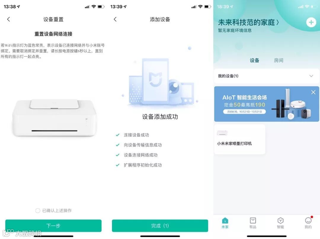 ↑通过米家APP连接打印机并为打印机配网