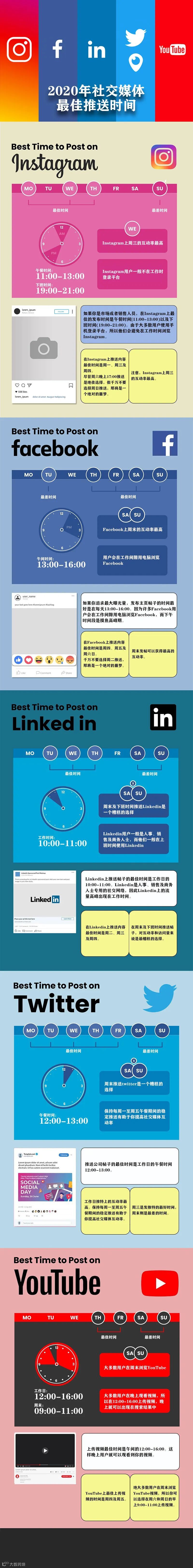 如果你想在竞争者中保持领先地位,那么就必须知道在社交媒体平台上发布内容的最佳时间和日期。废话不多说了,直接看图吧!