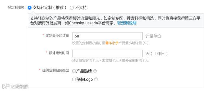 阿里的在线批发产品,推出了“轻定制”功能。