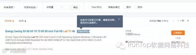 3、 每天RFQ市场为您发送的商机匹配邮件,邮件推荐中带有“Paid RFQ (买家付费采购)”即为买家付费采购,需要您尽快报价。
